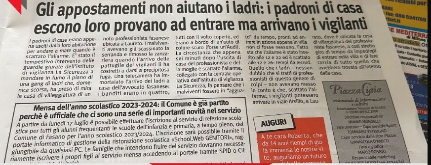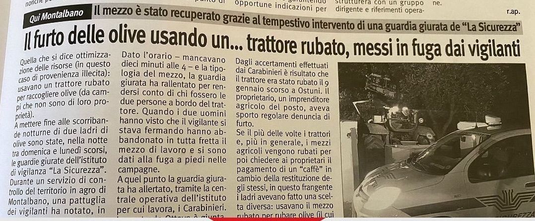 Lo storico Istituto di Vigilanza “La Sicurezza” viene fondato nel 1975 dal Signor Giuseppe De Simone e negli anni si è affermato come leader nel settore della vigilanza privata e della videosorveglianza. L’attività di controllo e vigilanza viene svolta H24 nella provincia di Brindisi.